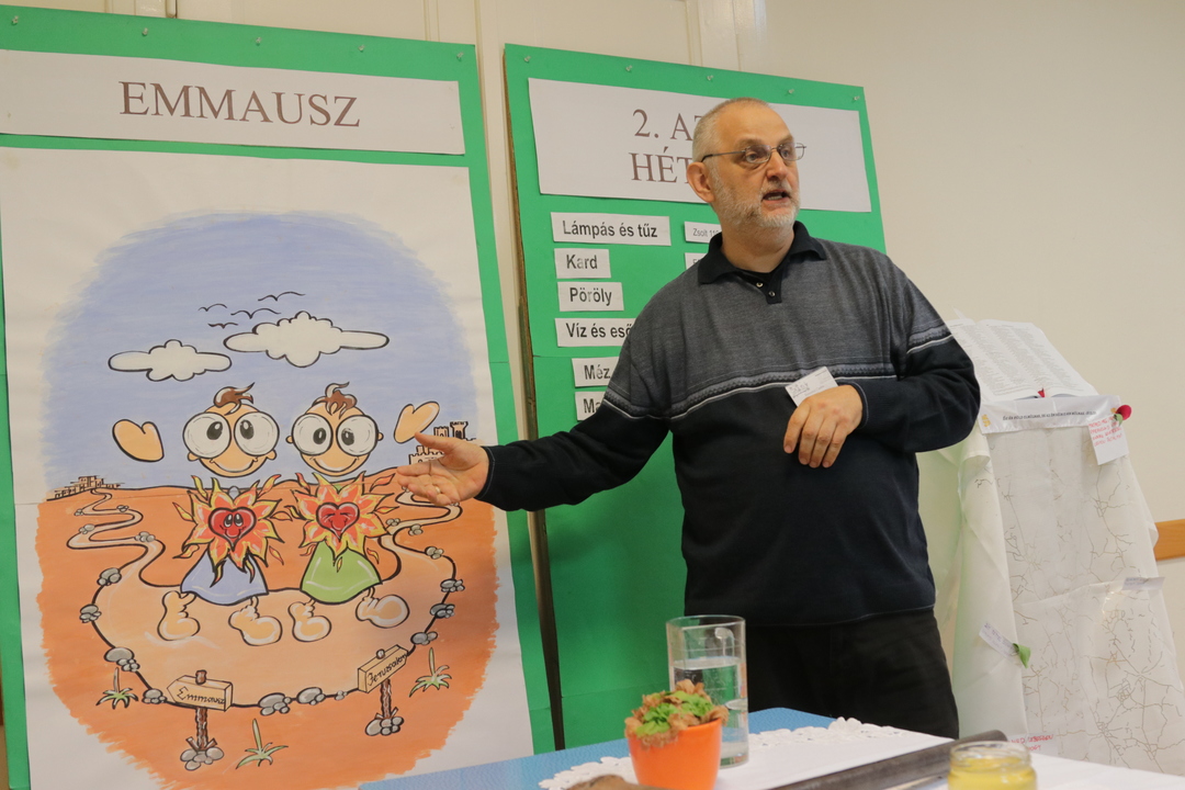 Most ér véget Békéscsabán az Emmausz kurzus, mely úgy fog élni az emlékezetünkben, mint „A Kreatív Emmausz kurzus”, ugyanis 30 olyan résztvevővel találkoztunk Békéscsabán, akik mindenüket belerakták ebbe a kurzusba: ötleteiket, lelkesedésüket, művészi készségüket, de olyan magas fokon, amit még nem láttunk sok év alatt. Nekünk volt élmény. Igen, Békéscsabára is úgy jövünk már, mint akik hazajönnek, megszerettük a csabai testvéreket. Bennünket is és a vendégeket is oly szeretettel fogadtnak, mint az édesanyáink. A kurzuson Jézus-Ige megnyitotta a szemünket és az Igét a számunkra és fellángolt a szívünk. A résztvevők mondták a kurzus végén: „Az eucharisztia élmény egyedi volt, még soha nem éltük meg így.” „Nagy élmény volt, hogy az emmauszi úton nem vagyunk egyedül, ott van Jézus velünk és van Kleofás-párunk is.” „Beleéltem magam az evangéliumba. Jézus közel volt. Nagyon jó volt észrevenni, hogy a szentmise az Emmauszi útra épül.” „Nemsokára 70 éves leszek, de még ilyet nem láttam.” Akik szolgáltak a kurzuson: a hazaiak között Márti és Etuka, a szegedi csapatunk tagjai közül Éva, Erika, Míra, Dénes, Csabi, Balázs és Gellért.