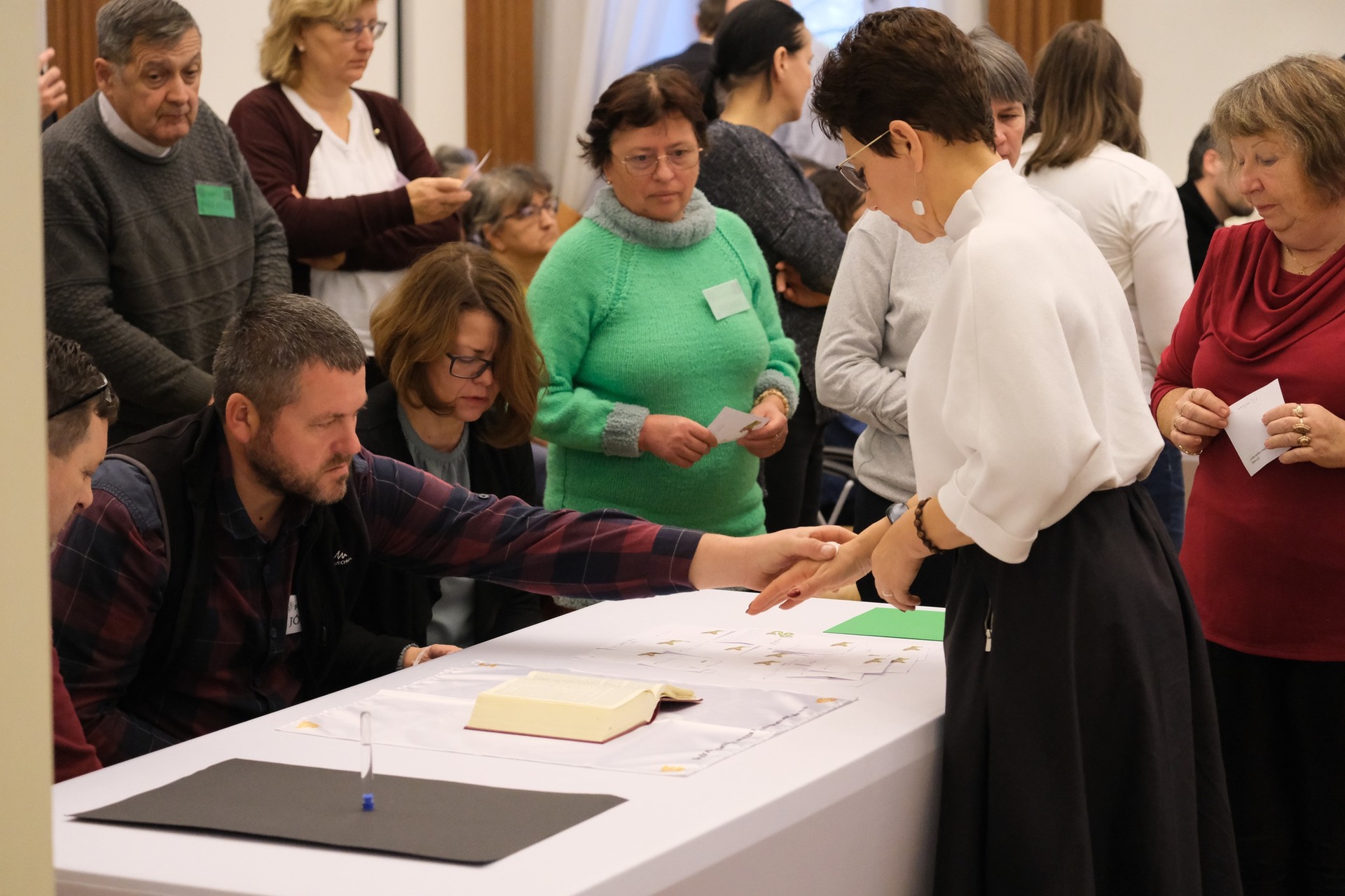 • A résztvevők többsége nem a bennünket ismerők köréből érkezett, és 60 pap, 20 szerzetes, 15 diakónus is volt köztük. Akik nincsenek a mi stílusunkhoz szokva, azoknak nem tudjuk kiszámítani a reakcióját. De Istenben bízva mertünk úgy készülni, hogy azt adjuk, amink van, a maga teljességében: direkt igehirdetés, a végén megtapasztalási, válaszadási lehetőséggel. Mert az üzenet nem a fejnek szól, hanem a szívnek és a fejnek is!