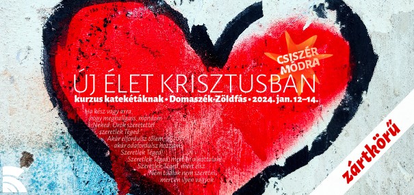 A Szeged-Csanádi Egyházmegye Kateketikai Intézete meghívására és szervezésében zártkörű Új élet Krisztusban kurzust tartunk az intézet katekétái számára 2024. január 12-14. között Domaszék-Zöldfáson az egyházmegyei lelkigyakorlatos házban. Az érdeklődők Gyuris Gellért koordinátort keressék (gyuris.gellert-KUKAC-kateketa.hu), ill. a SZEKI belső fórumán kiadott módon tudnak jelentkezni.